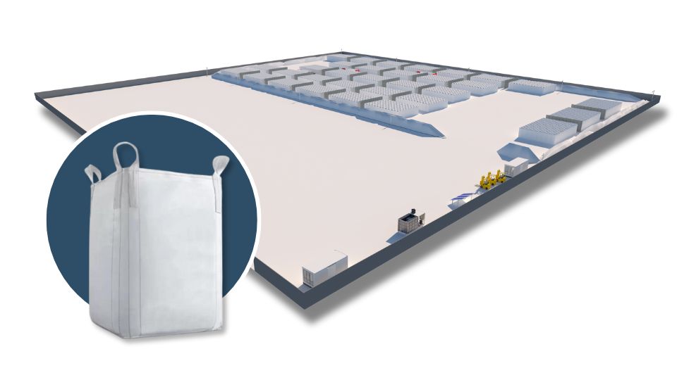 Almacenaje en sacos Maxibags (90x90x120cm), con una capacidad de 1.250kg c/u.